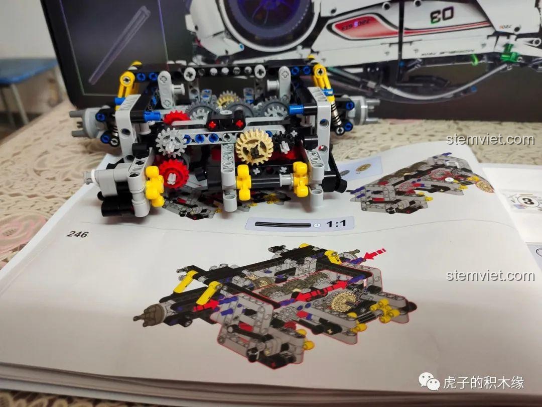 Điểm nhấn nổi bật của đồ chơi mô hình Mould King 13145D là hệ thống truyền động 8 cấp số phức tạp, cho phép bé khám phá cơ chế hoạt động của hộp số xe hơi thực tế. Ngoài ra, xe còn có đèn LED rực rỡ, làm tăng thêm vẻ chân thực và ấn tượng khi chơi trong điều kiện thiếu sáng. Vô lăng có thể xoay liên kết với bánh trước, cùng khả năng mở cửa cánh bướm, nắp capo và nâng hạ cánh gió sau, tất cả tạo nên một bộ đồ chơi McLaren 720S đầy đủ tính năng, kích thích sự khám phá và sáng tạo của bé.