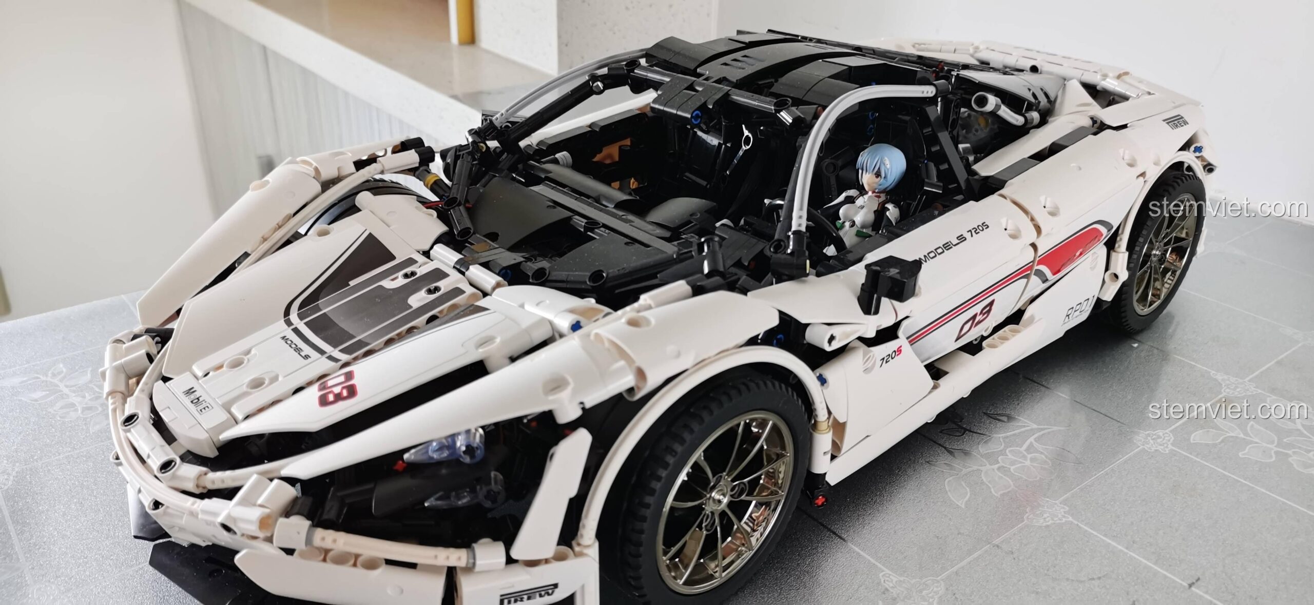 Mỗi chi tiết của bộ lắp ráp Mould King 13145D đều được chăm chút tỉ mỉ, từ những đường cong khí động học mượt mà đến nội thất buồng lái chân thực. Đặc biệt, mô hình siêu xe McLaren 720S này còn có khả năng mở được cửa cánh bướm đặc trưng, nắp capo trước và nâng hạ cánh gió sau, mang lại trải nghiệm tương tác sống động. Đây không chỉ là một đồ chơi mô hình mà còn là một tác phẩm nghệ thuật kỹ thuật, thể hiện sự khéo léo và tinh vi trong từng mảnh ghép.