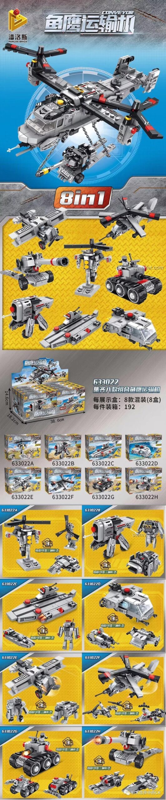 Điểm đặc biệt nhất của bộ sản phẩm này chính là thiết kế 8 trong 1, hay đúng hơn là 25 trong 1! Mỗi chi tiết trong bộ đồ chơi mô hình 633022 đều được chăm chút tỉ mỉ. Mô hình Osprey hợp thể cuối cùng mang màu xám quân sự đặc trưng, với các chi tiết như cánh quạt có thể xoay, buồng lái và khoang chứa hàng, tái hiện chân thực chiếc máy bay ngoài đời thực. Nhưng điều kỳ diệu nằm ở 8 mô hình nhỏ: một phi đội quân sự hoàn chỉnh bao gồm máy bay phản lực, pháo phòng không, tàu chiến mini, trực thăng tấn công, xe tăng, xe bọc thép, và pháo tự hành. Chưa dừng lại ở đó, mỗi mô hình nhỏ này lại có thể biến đổi thành 3 dạng khác nhau, mở ra vô vàn kịch bản chiến đấu cho bé. Sự đa dạng trong thiết kế này đảm bảo rằng bé sẽ không bao giờ cảm thấy nhàm chán, mỗi lần chơi là một lần khám phá mới.