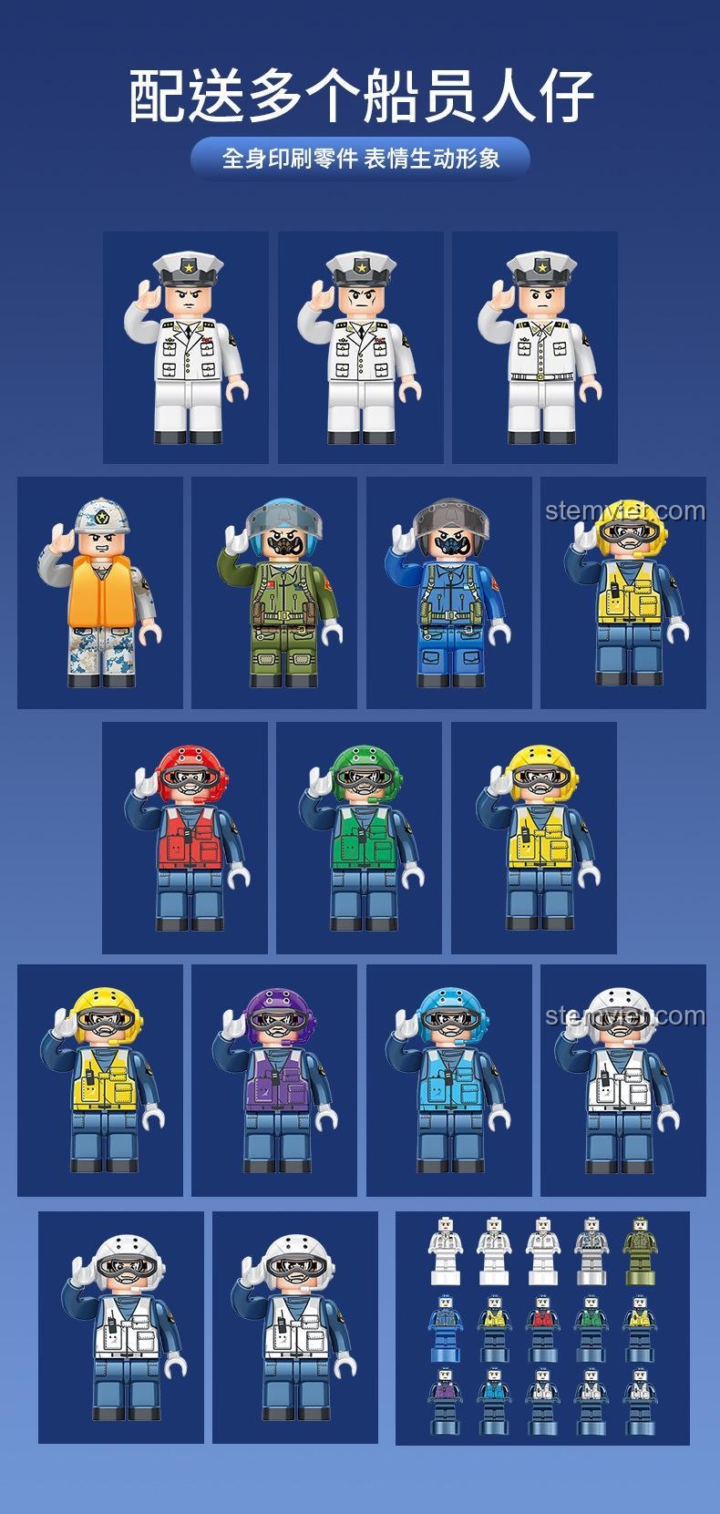 Bộ đồ chơi mô hình Tàu chiến Liêu Ninh 688011 có đi kèm minifigure không?