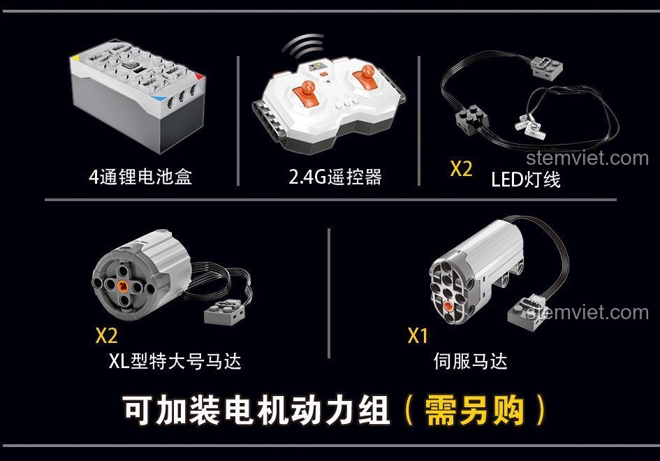 Mô hình cơ bản không cần pin để lắp ráp và chơi các tính năng cơ khí như nâng hạ cánh gió, mở cửa. Tuy nhiên, để sử dụng tính năng đèn LED và nâng cấp điều khiển từ xa, bạn sẽ cần mua thêm bộ động cơ và pin tương ứng (không đi kèm trong hộp sản phẩm bộ xếp hình Xe đua Ford GT 013).