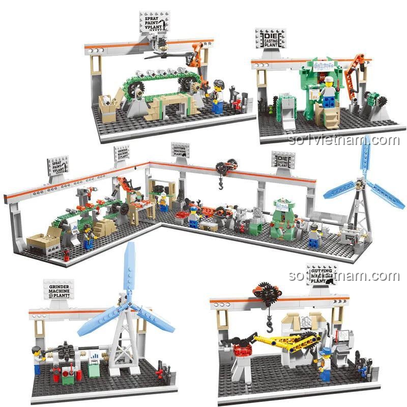 - Sử dụng các mảnh ghép từ các bộ tương thích LEGO® khác để mở rộng diện tích nhà máy, xây thêm các khu vực mới như kho bãi, văn phòng điều hành.
