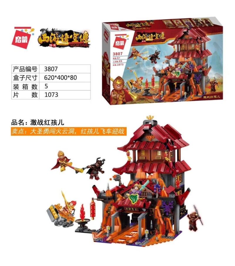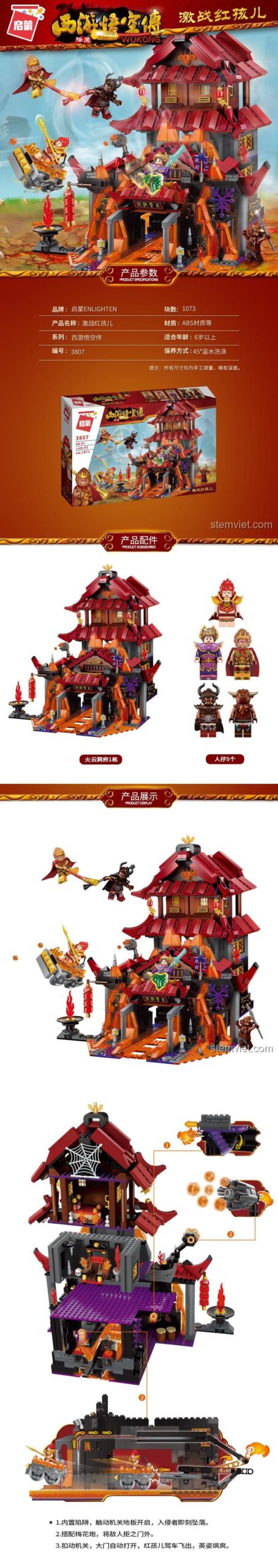Bộ đồ chơi xây dựng Cuộc chiến Tôn Ngộ Không và Hồng Hài Nhi 3807 cũng có thể kết hợp với các bộ lắp ráp khác cùng chủ đề Tây Du Ký hoặc các bộ lâu đài, pháo đài để mở rộng không gian chơi, tạo nên một thế giới huyền thoại rộng lớn hơn cho bé thỏa sức khám phá.