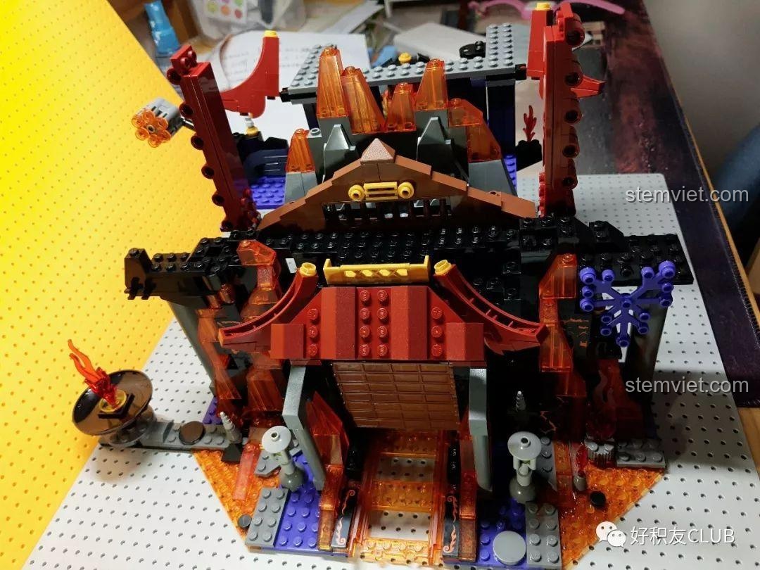 Bộ đồ chơi mô hình Hỏa Diệm Sơn 3807 không chỉ là một món đồ chơi, mà còn là một tác phẩm kiến trúc thu nhỏ đầy ấn tượng. Với kích thước mô hình khoảng 38cm chiều dài, 22cm chiều rộng và 28cm chiều cao, công trình này tái hiện chân thực Lâu đài Hỏa Diệm Sơn với những gam màu chủ đạo rực rỡ như đỏ, cam, đen, xám và tím, gợi lên không khí nóng bỏng của vùng đất này. Từng chi tiết được thiết kế tỉ mỉ, từ mái ngói cong vút mang đậm phong cách kiến trúc cổ điển Trung Hoa cho đến những ngọn lửa bập bùng, tạo nên một khung cảnh sống động và đầy thử thách.