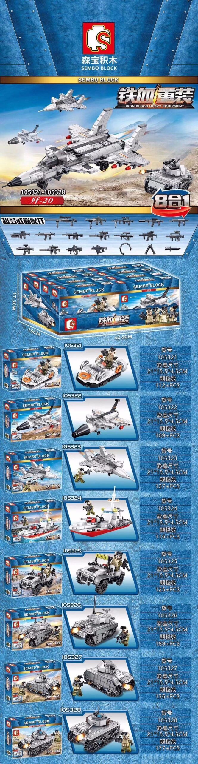 Bạn có thể mua bộ sưu tập quân sự SEMBO Block 105321-105328 với giá tốt nhất tại Kho đồ chơi trẻ em. Chúng tôi cam kết mang đến sản phẩm chính hãng, chất lượng đảm bảo cùng nhiều ưu đãi hấp dẫn. Hãy ghé thăm website hoặc liên hệ ngay để không bỏ lỡ cơ hội sở hữu bộ đồ chơi tuyệt vời này!