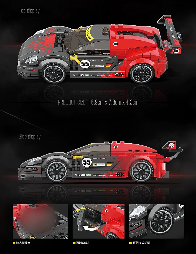 Ngay từ cái nhìn đầu tiên, bộ lắp ghép Xe thể thao QUANGUAN 100144 đã gây ấn tượng mạnh mẽ với thiết kế hiện đại, mạnh mẽ và đầy cá tính. Chiếc xe nổi bật với sự kết hợp hài hòa giữa hai tông màu chủ đạo là đỏ và xám, cùng điểm nhấn đen tạo nên vẻ ngoài cực kỳ thể thao và cuốn hút. Với kích thước lý tưởng 16.9cm (dài) x 7.8cm (rộng) x 4.3cm (cao), mô hình này vừa vặn để bé cầm nắm và điều khiển, đồng thời đủ lớn để thể hiện mọi chi tiết tinh xảo. Từ phần đầu xe hầm hố với đèn pha sắc nét, thân xe khí động học cho đến cánh gió lớn phía sau, mỗi bộ phận đều được chăm chút tỉ mỉ, mang đến một Xe thể thao 100 144 chân thực đến bất ngờ. Đây thực sự là một Siêu xe đua 100144 mà bất kỳ tín đồ tốc độ nào cũng muốn sở hữu!