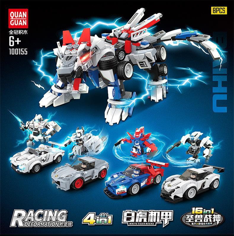 Bộ lắp ráp QUANGUAN 100155-2 Chiến Thần Thánh Thú Bạch Hổ (665 mảnh ghép) – Biến Hình Thần Tốc và Biến Hình 4 Trong 1