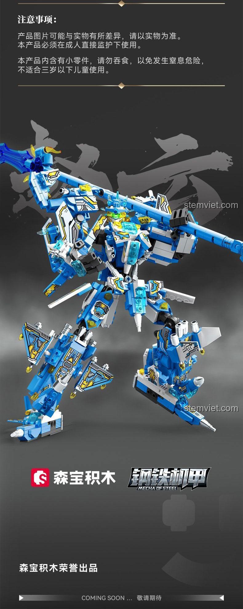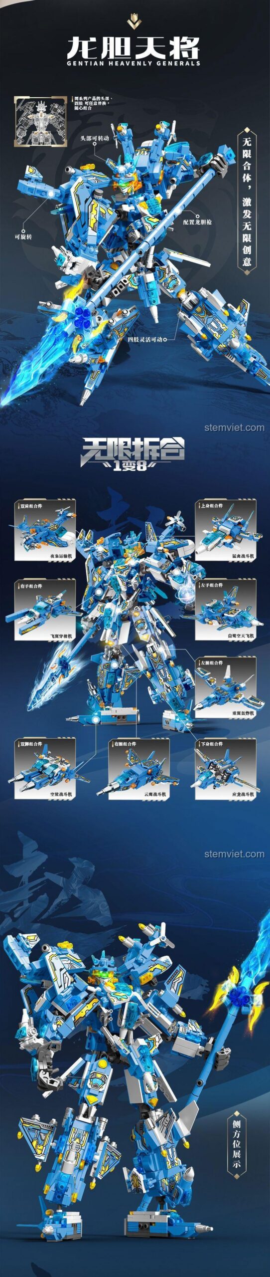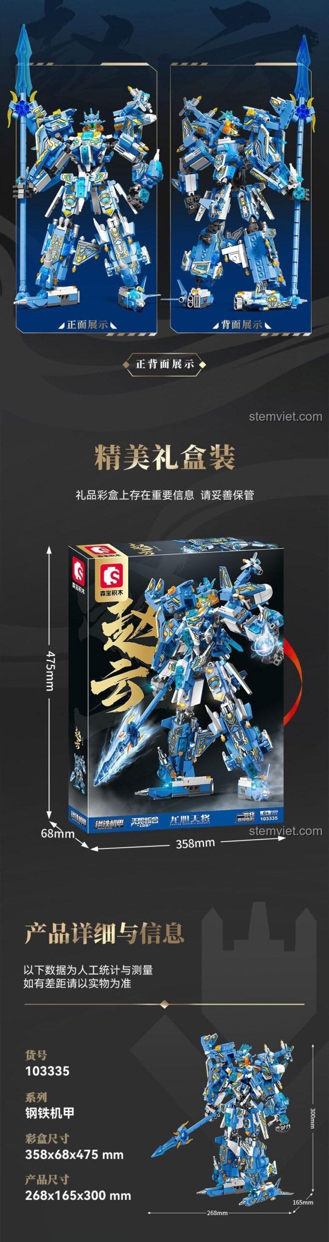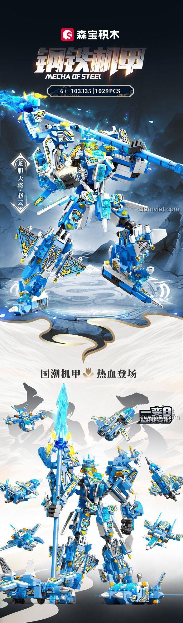 Bộ lắp ráp SEMBO 103335 Cơ Giáp Thép Triệu Vân (1029 mảnh ghép) – Chiến Binh Huyền Thoại và Biến Hình 8 Kiểu