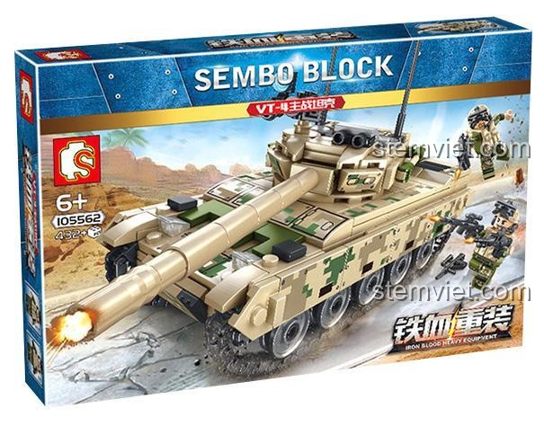 Xe tăng chiến đấu chủ lực VT-4, còn được biết đến với tên gọi MBT-3000, là niềm tự hào của ngành công nghiệp quốc phòng Trung Quốc. Ra mắt lần đầu vào năm 2012 bởi Tập đoàn Norinco, VT-4 được thiết kế đặc biệt để xuất khẩu, thể hiện sức mạnh và công nghệ tiên tiến. Nó nhanh chóng trở thành biểu tượng của sự hiện đại hóa quân sự, được nhiều quốc gia tin dùng. Với bộ lắp ráp này, bé trai của bạn sẽ được tự tay tái hiện lại cỗ máy chiến đấu uy lực này, từ đó khơi gợi niềm đam mê tìm hiểu về lịch sử quân sự và công nghệ quốc phòng. Mỗi mảnh ghép của bộ lắp ráp Xe Tăng VT-4 SEMBO 105562 đều góp phần xây dựng nên một câu chuyện về sức mạnh và chiến lược, giúp bé không chỉ chơi mà còn học hỏi, phát triển tư duy chiến thuật ngay từ khi còn nhỏ.