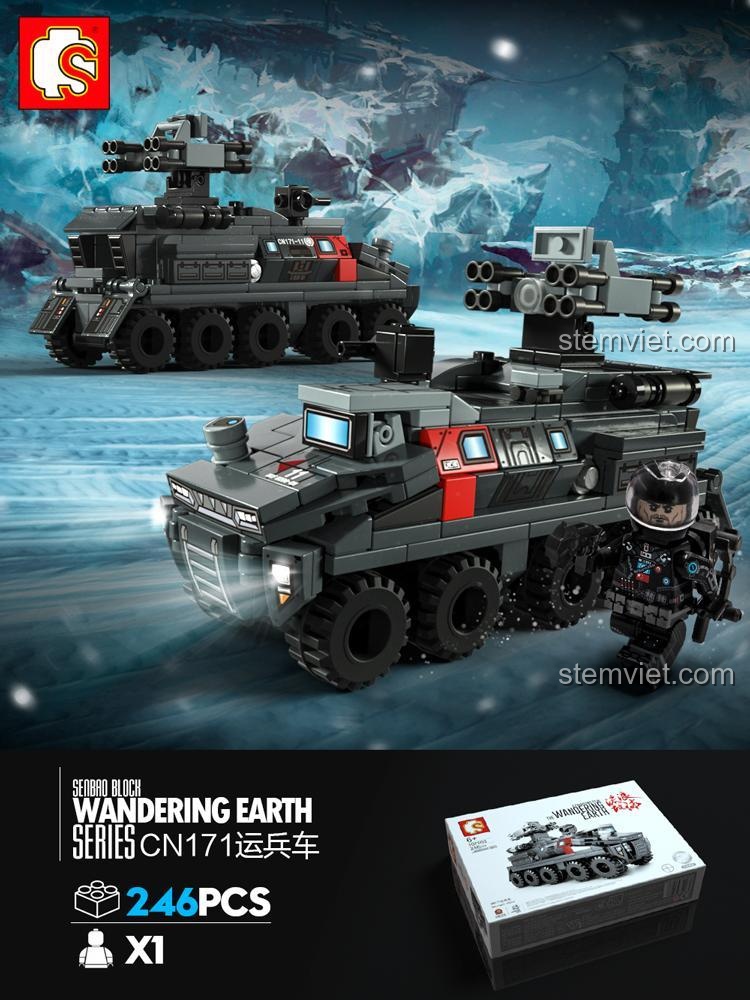 Chào mừng bạn đến với thế giới đầy kịch tính của bộ lắp ráp Xe Vận Chuyển Quân Sự CN171, một kiệt tác tái hiện chân thực từ bộ phim khoa học viễn tưởng đình đám “Lưu Lạc Địa Cầu” (The Wandering Earth)! Bộ phim, ra mắt vào năm 2019, đã nhanh chóng trở thành một hiện tượng toàn cầu, đưa khán giả vào một tương lai đen tối khi Trái Đất phải đối mặt với nguy cơ va chạm với Sao Mộc. Trong bối cảnh đó, những chiếc xe vận chuyển quân sự như CN171 đóng vai trò cực kỳ quan trọng, là phương tiện di chuyển và chiến đấu không thể thiếu của nhân loại trong cuộc chiến sinh tồn vĩ đại. Mỗi chi tiết của bộ lắp ráp này đều được thiết kế tỉ mỉ để tái hiện lại tinh thần quả cảm và công nghệ tiên tiến của chiếc xe trong phim, mang đến cho bé trai 6 tuổi của bạn không chỉ một món đồ chơi mà còn là một phần của câu chuyện anh hùng, nơi bé có thể tự mình viết tiếp những cuộc phiêu lưu giải cứu thế giới. Hãy để bộ lắp ráp Xe Vận Chuyển Quân Sự CN171 khơi dậy trí tưởng tượng và niềm đam mê khám phá vũ trụ trong con bạn!