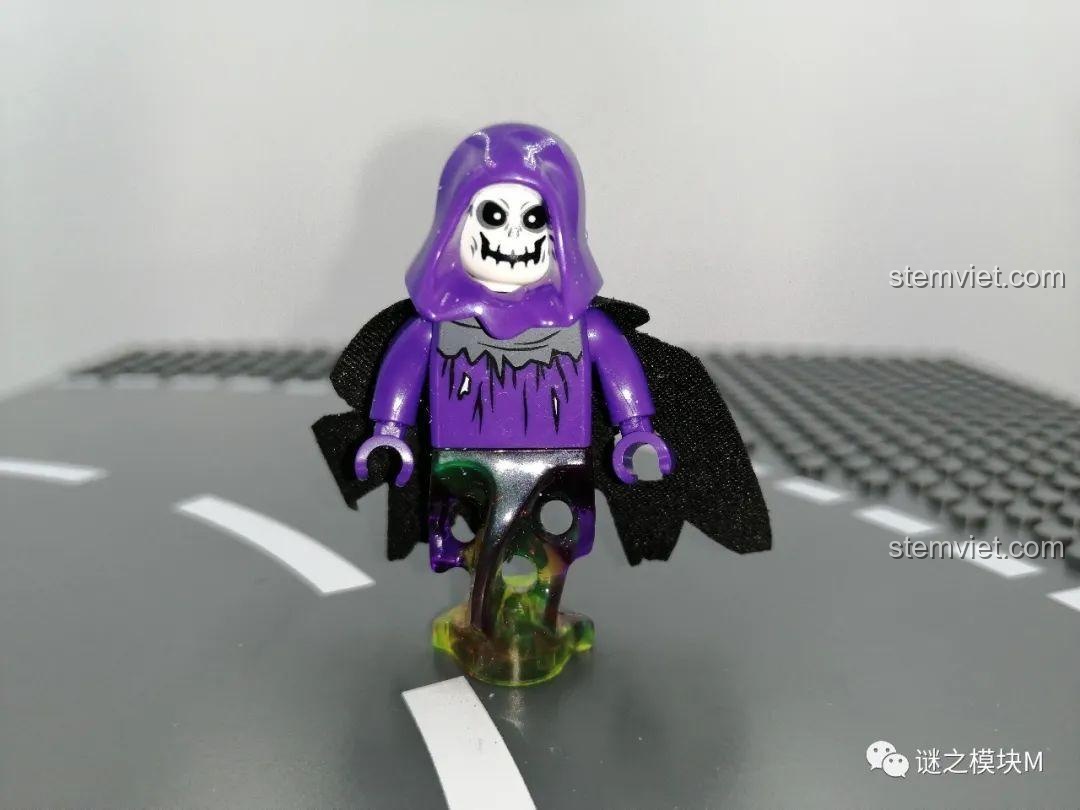 Bộ đồ chơi này đi kèm 4 minifigures độc đáo: Ma Thổi Đèn, Người Đầu Heo, Người Bí Ngô và Pháp Sư Tử Thần, giúp bé có thêm nhiều nhân vật để sáng tạo câu chuyện và trò chơi nhập vai.