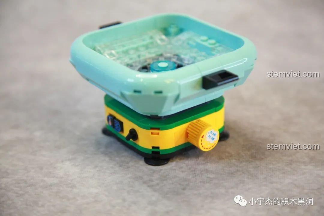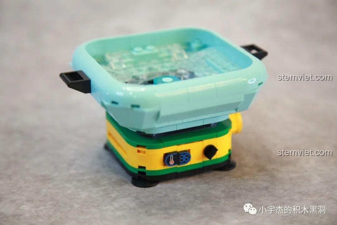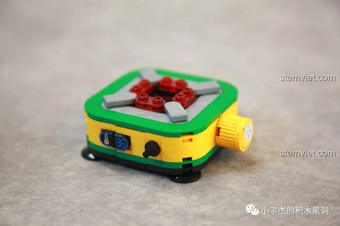 Thêm vào đó, mô hình bếp ga mini đi kèm có một cơ chế xoay đặc biệt. Khi bé xoay núm điều khiển trên bếp, một bộ phận bên trong nồi lẩu sẽ chuyển động, tạo hiệu ứng như chú ếch đang ‘khuấy’ nồi lẩu của mình. Mặc dù không có tính năng âm thanh hay đèn LED, cơ chế cơ khí này vẫn đủ sức gây bất ngờ và thích thú, đặc biệt là với các bé học sinh cấp 1 và học sinh cấp 2 yêu thích sự tương tác trong đồ chơi.