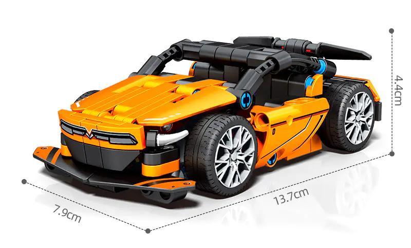 Ngay từ cái nhìn đầu tiên, bộ lắp ráp SEMBO 7000 đã gây ấn tượng mạnh với thiết kế hiện đại, thể thao và đầy cá tính. Với 225 mảnh ghép, mô hình xe đua này tái hiện chân thực một chiếc siêu xe với những đường nét khí động học tinh xảo. Kích thước mô hình sau khi hoàn thiện là 13.7 cm chiều dài, 7.9 cm chiều rộng và 4.4 cm chiều cao, vừa vặn để bé cầm nắm và chơi đùa, hoặc trưng bày trên bàn học.