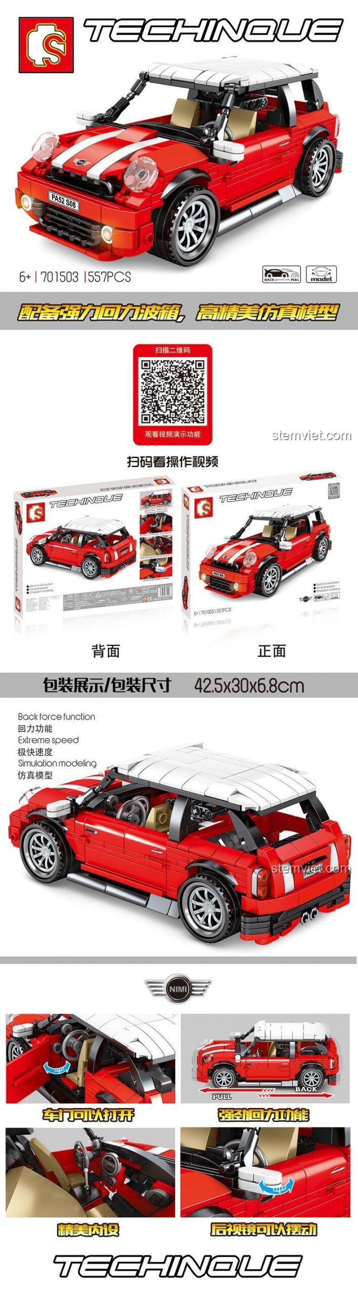 Mở Rộng Trải Nghiệm Với Bộ Lắp Ráp Xe Mini Cooper Đỏ Kéo Lùi SEMBO 701503: