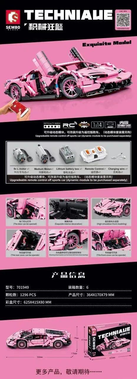 Bộ lắp ráp SEMBO 701949 Siêu Xe Lamborghini Centenario Hồng (1296 chi tiết) – Tốc Độ Đỉnh Cao và Điều Khiển Từ Xa (Nâng Cấp)