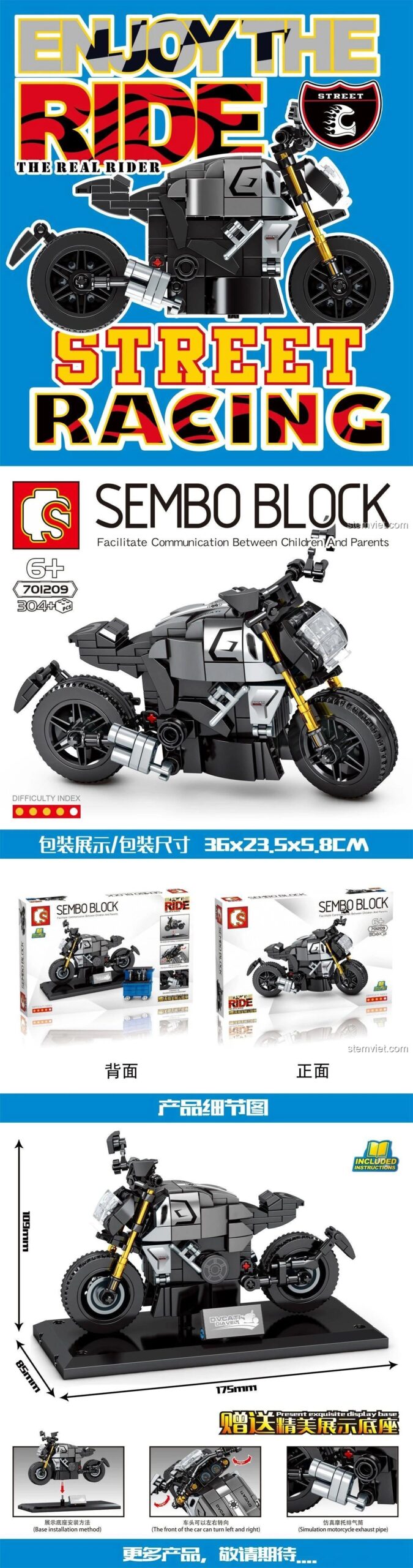 Đừng chần chừ, hãy sở hữu ngay bộ lắp ráp SEMBO Block 701209 Ducati Diavel để bé yêu thỏa sức sáng tạo và khám phá thế giới tốc độ đầy hấp dẫn!