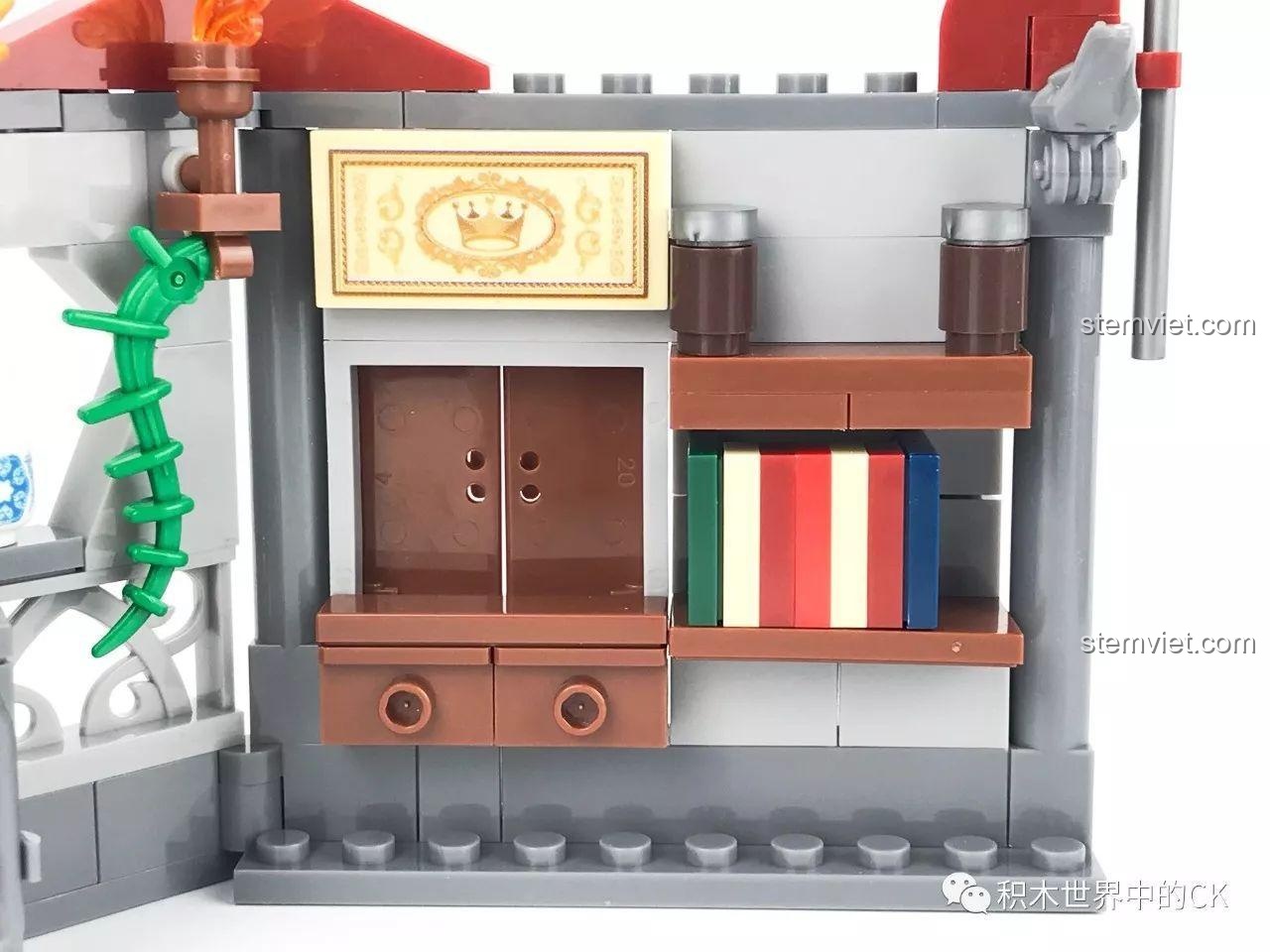 Có, bộ lắp ráp này tương thích với các khối lắp ghép tiêu chuẩn khác, cho phép bé tự do sáng tạo và kết hợp với các bộ đồ chơi lâu đài, hiệp sĩ hoặc các mô hình khác để mở rộng thế giới chơi của mình.
