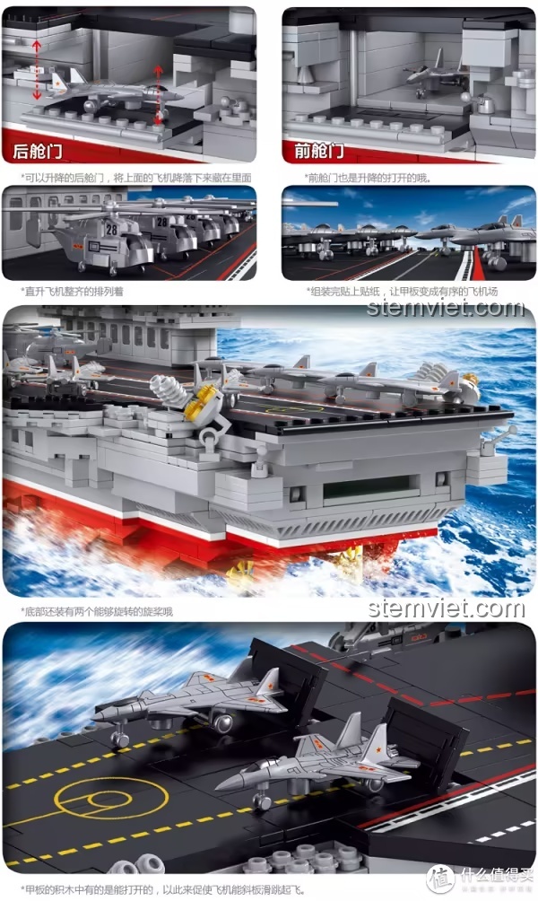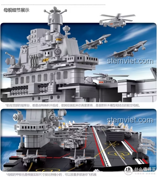 ❓ Có phụ kiện hay máy bay đi kèm bộ xếp hình Hàng không mẫu hạm Liêu Ninh này không?