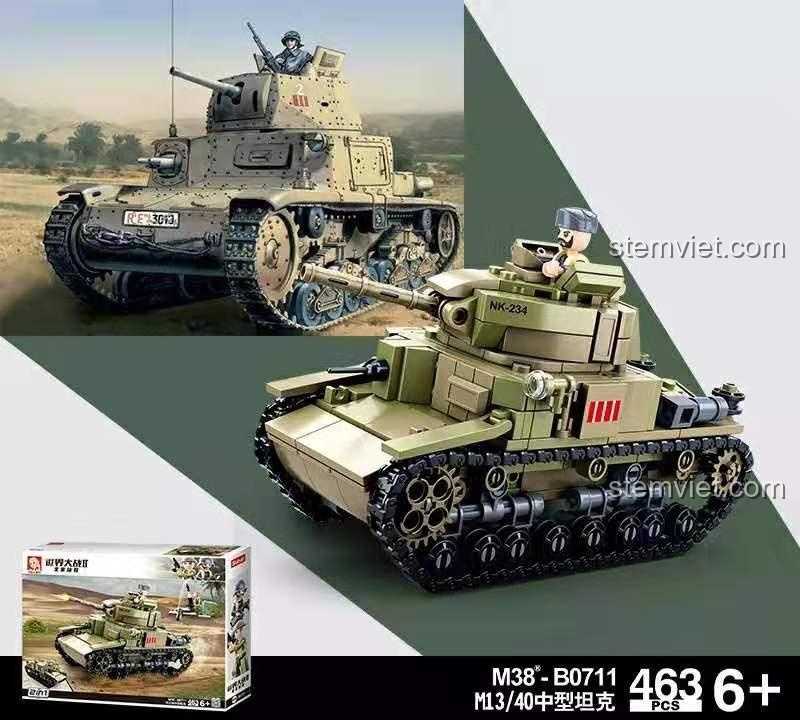 Bạn có biết, chiếc xe tăng M13/40 mà bé yêu sắp được tự tay lắp ráp từ bộ đồ chơi mô hình Sluban M38-B0711 này mang trong mình cả một câu chuyện lịch sử đầy kịch tính? Xe tăng hạng trung M13/40 không chỉ là một cỗ máy chiến đấu, mà còn là biểu tượng của Quân đội Hoàng gia Ý trong những năm tháng khốc liệt của Thế chiến II. Ra đời vào năm 1940, M13/40 đã nhanh chóng được đưa vào sử dụng, đặc biệt là trong các chiến dịch cam go tại Bắc Phi.Tưởng tượng xem, bé trai 6 tuổi của bạn sẽ được hóa thân thành những người lính dũng cảm, tái hiện lại những trận đánh sa mạc huyền thoại, nơi những chiếc xe tăng này đã lăn bánh qua cát bụi và nắng cháy. Mỗi mảnh ghép của bộ đồ chơi xây dựng Sluban M38-B0711 không chỉ là một chi tiết nhựa, mà còn là một phần của lịch sử, giúp bé hiểu hơn về những sự kiện đã định hình thế giới. Đây không chỉ là một bộ lắp ráp thông thường, mà còn là một cánh cửa mở ra thế giới của những câu chuyện anh hùng, khơi gợi trí tò mò và niềm đam mê khám phá lịch sử quân sự cho các học sinh tiểu học. Hãy cùng bé đắm chìm vào không khí Chiến Trường Rực Lửa và viết nên câu chuyện của riêng mình!