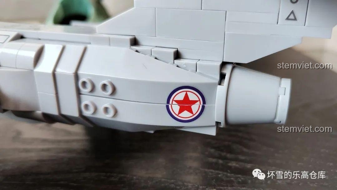 Bộ lắp ráp Sluban M38-B0983 Máy bay chiến đấu MiG-15bis không chỉ là một mô hình tĩnh mà còn mang đến những tính năng tương tác thú vị, nâng cao trải nghiệm chơi của bé. Điểm nhấn nổi bật nhất chính là buồng lái có thể mở ra, cho phép bé dễ dàng đặt minifigure (nếu có) vào bên trong hoặc khám phá các chi tiết mô phỏng bảng điều khiển. Điều này kích thích trí tưởng tượng và khả năng nhập vai của bé, giúp bé hóa thân thành phi công dũng cảm điều khiển ‘Chiến Cơ Huyền Thoại’ trên bầu trời.