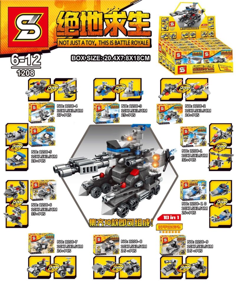 Bộ lắp ráp SY 1208 là một bộ đồ chơi 10 trong 1. Bé có thể lắp ráp 10 mô hình vũ khí và phương tiện quân sự nhỏ riêng lẻ. Sau đó, tất cả 10 mô hình này có thể được kết hợp lại để tạo thành một chiếc xe bọc thép pháo binh khổng lồ duy nhất, mang lại tổng cộng 11 mẫu lắp ráp độc đáo.