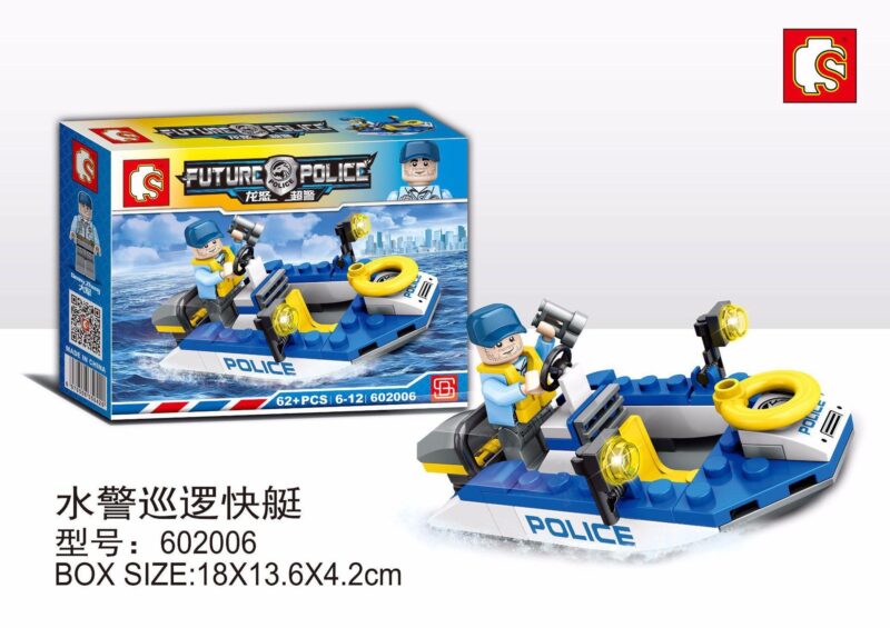 Bộ lắp ghép SY 602006 đi kèm với một minifigure cảnh sát dũng cảm tên là Denny Zhang, sẵn sàng cùng bé tham gia vào mọi cuộc phiêu lưu trên biển.