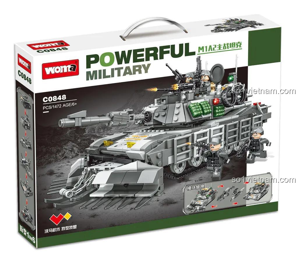 Bộ Lắp Ráp WOMA C0848 Xe Tăng M1A2 Abrams (1472 Mảnh Ghép) – Sức Mạnh Quân Sự và Lắp Được 6 Kiểu