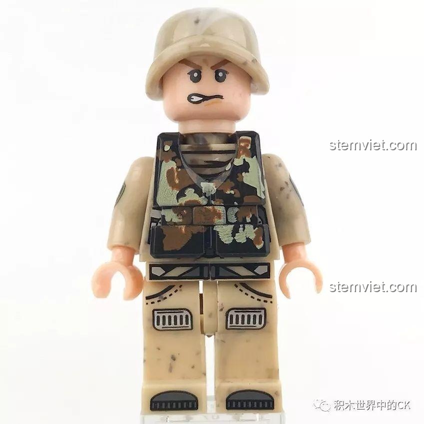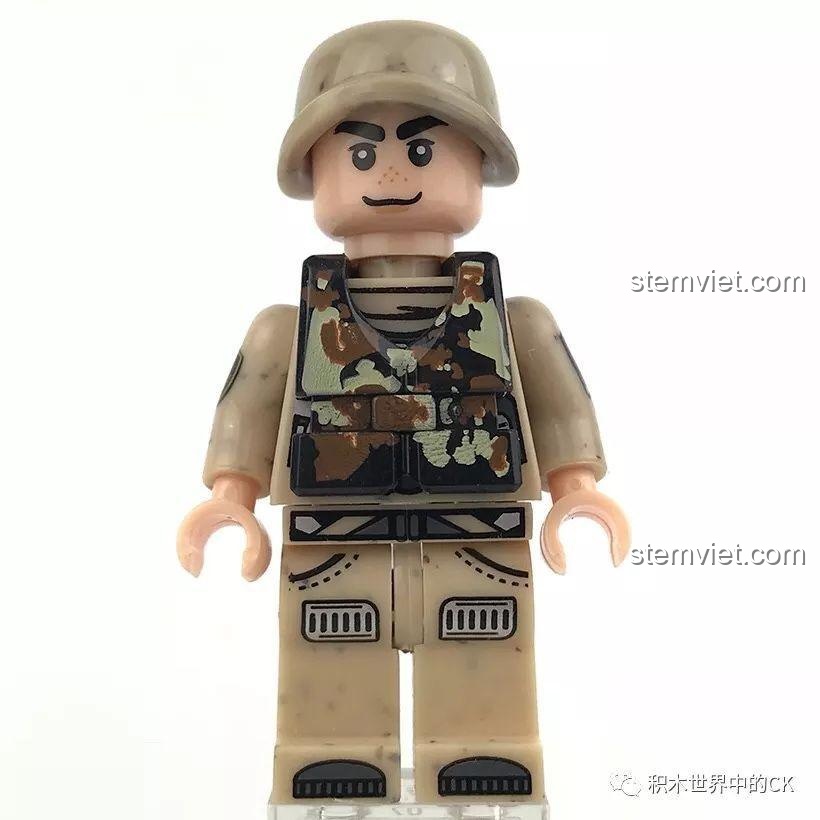 Mô hình có chiều dài khoảng 30cm, chiều rộng 15cm và chiều cao 20cm (khi nòng pháo nâng cao), mang lại cảm giác vững chãi và hoành tráng. Từng mảnh ghép được thiết kế để khớp nối chặt chẽ, tạo nên một tổng thể hài hòa và bền bỉ. Đặc biệt, bộ đồ chơi này đi kèm 3 minifigure lính với trang phục quân đội chi tiết, bao gồm Đội trưởng Cindy, Tân binh A và Tân binh B. Các minifigure này được trang bị đầy đủ vũ khí như súng, dao, bộ đàm, sẵn sàng tham gia vào mọi nhiệm vụ.