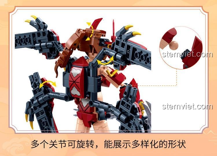 Với hơn 30 khớp nối linh hoạt trên toàn thân, bé có thể tạo ra vô số tư thế khác nhau, từ chiến đấu dũng mãnh đến những dáng đứng đầy cá tính cho đồ chơi lắp ghép ZDEL 60014.