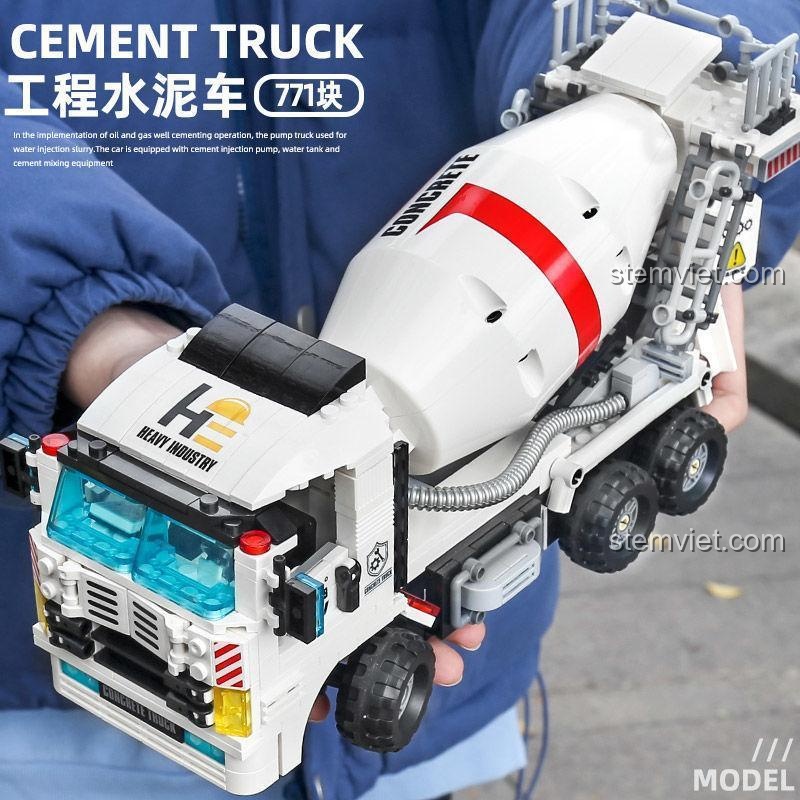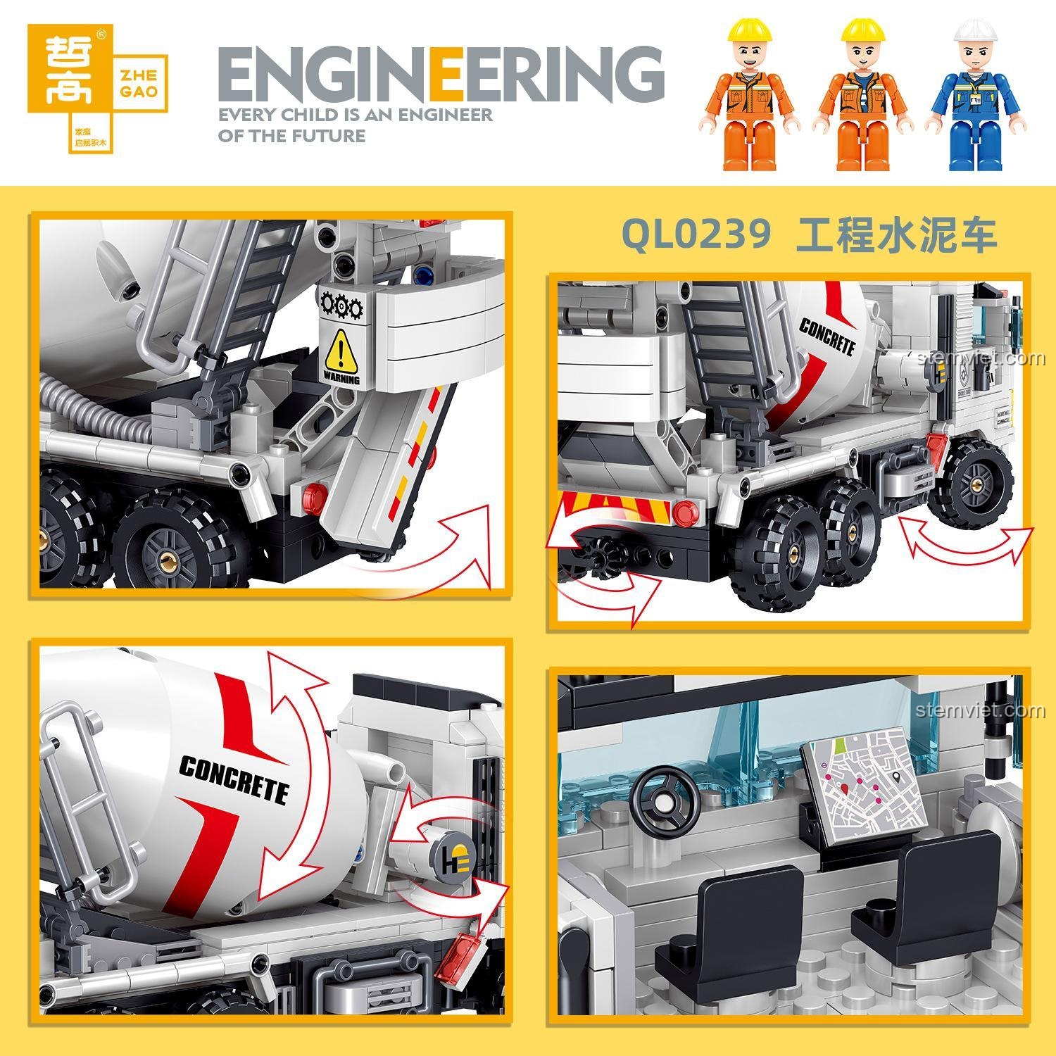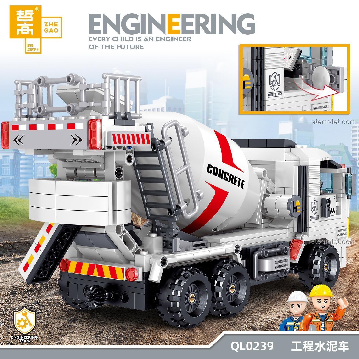 Bộ lắp ráp Zhe Gao QL0239 Xe Trộn Bê Tông Công Trình (771 mảnh ghép) – Sức Mạnh Công Trường, Bồn Xoay & 3 Minifigures