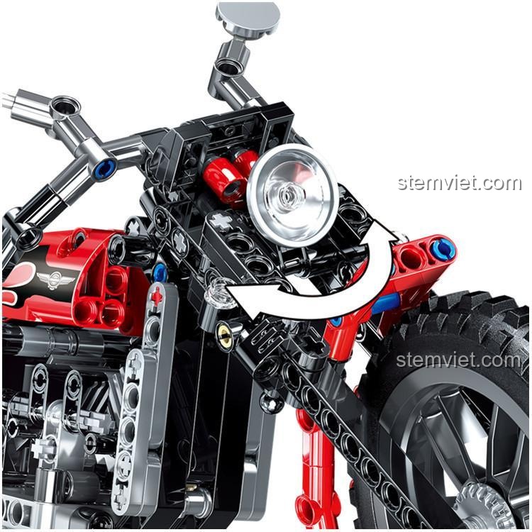 Tay lái có thể điều hướng là một tính năng tương tác tuyệt vời, giúp bé rèn luyện khả năng phối hợp tay mắt và định hướng không gian. Bé có thể tưởng tượng mình đang điều khiển chiếc xe máy Harley trên những cung đường mạo hiểm, vượt qua mọi thử thách. Bánh xe có thể quay trơn tru, cho phép mô hình di chuyển mượt mà trên nhiều bề mặt. Những tính năng này không chỉ mang lại niềm vui khi chơi mà còn là nền tảng vững chắc để bé phát triển tư duy hệ thống và kỹ năng giải quyết vấn đề, đặc biệt phù hợp với các bé trai đam mê kỹ thuật và xe cộ.