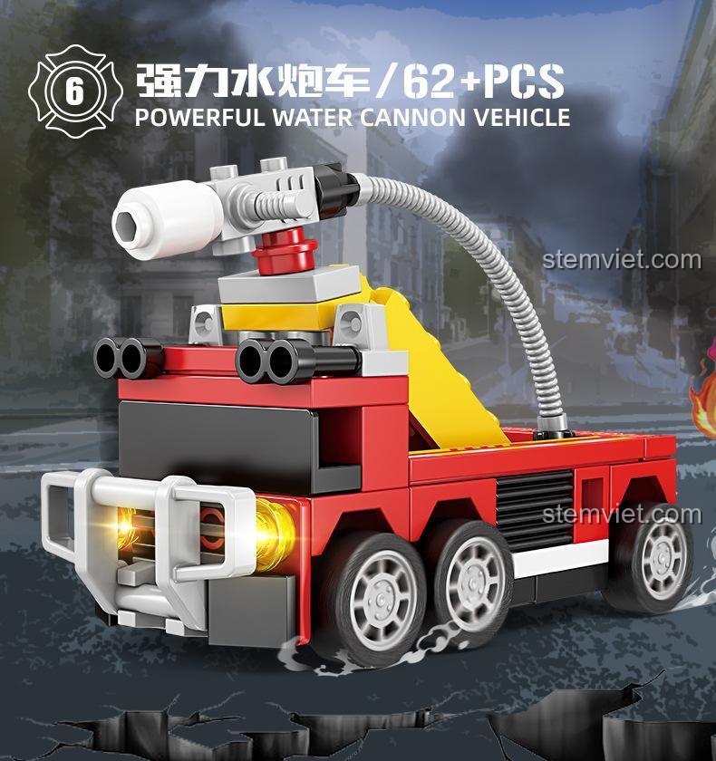 • Xe phun nước áp lực cao: Vũ khí tấn công tổng lực, dập tắt đám cháy từ xa với vòi rồng mạnh mẽ.