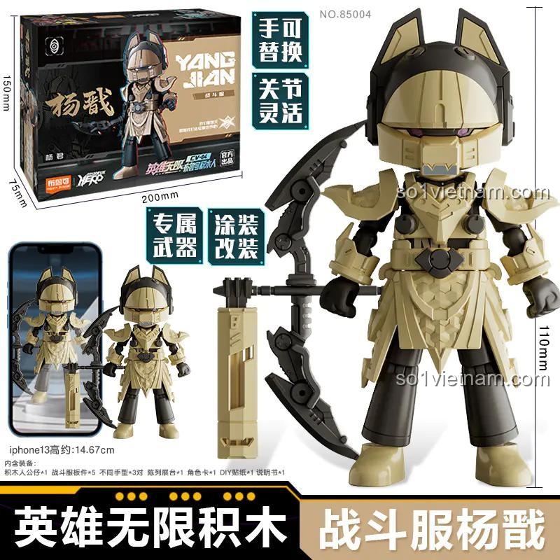 - Thiết kế lấy cảm hứng từ nhân vật: Mô hình tái hiện chân thực hình ảnh Dương Tiễn trong bộ giáp chiến đấu CV-04, một nhân vật quen thuộc trong thế giới Anh Hùng Vô Hạn, mang đến sự gần gũi và hứng thú cho người chơi.