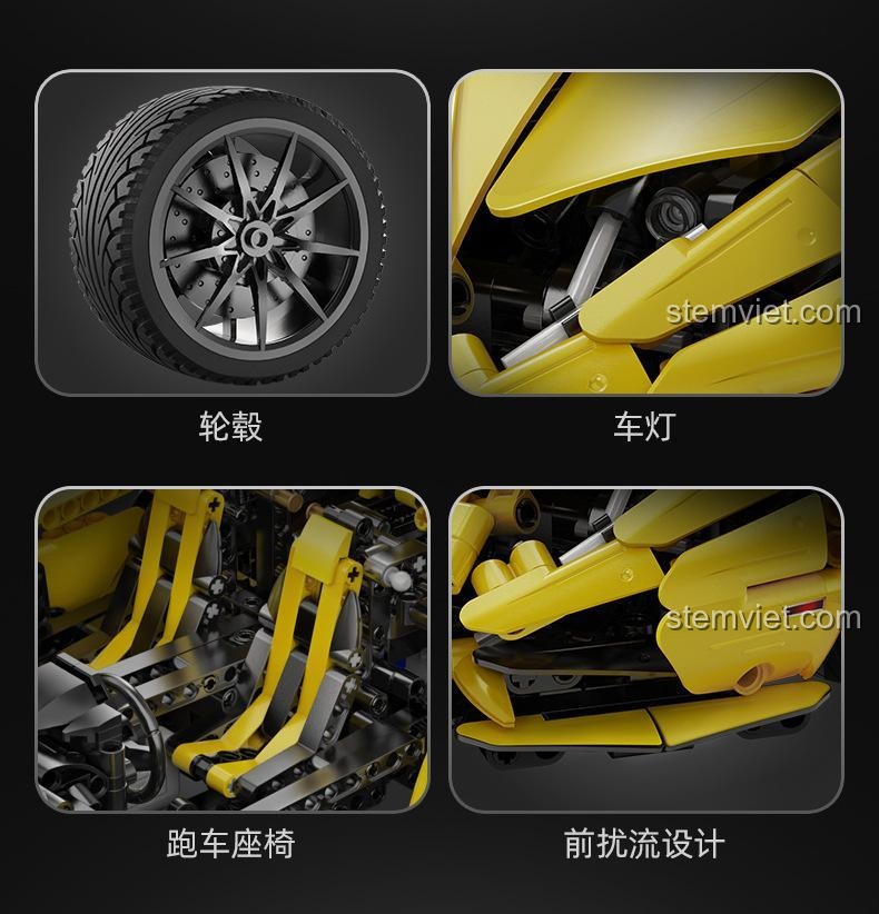 - Sáng tạo ý tưởng & Khám phá tìm tòi: Sau khi lắp xong, bé có thể tự do sáng tạo các kịch bản chơi, hoặc tìm tòi thêm về cấu tạo và chức năng của siêu xe.