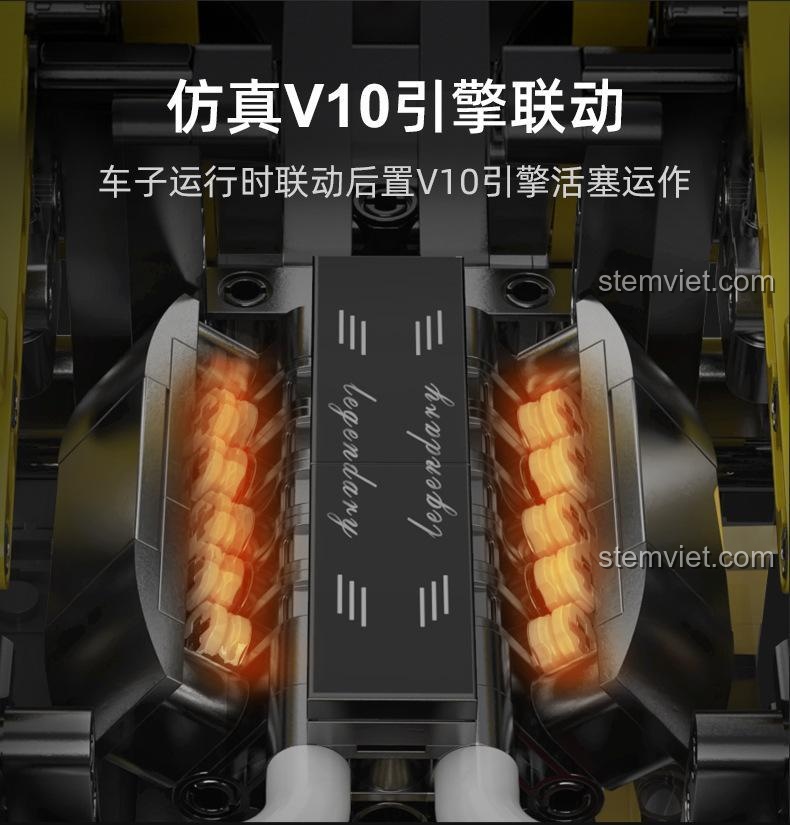 - Động cơ V10 mô phỏng: Các piston hoạt động liên kết khi xe lăn bánh, tạo hiệu ứng thị giác sống động.
