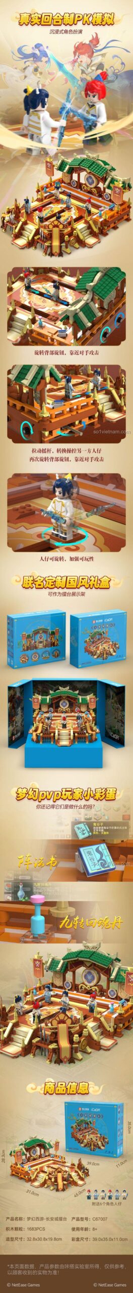 Chào mừng bạn đến với thế giới cổ trang đầy mê hoặc của bộ lắp ghép Mô hình Lôi Đài Cổ Trang CaDA C67007! Mô hình này không chỉ là một món đồ chơi mà còn là một tác phẩm nghệ thuật tái hiện lại Đấu Trường Lôi Đài Trường An Thành, một địa danh nổi tiếng trong lịch sử Trung Quốc và đặc biệt là trong tựa game đình đám Fantasy Westward Journey. Trường An Thành, kinh đô của nhiều triều đại phong kiến, luôn là biểu tượng của sự phồn thịnh và các hoạt động văn hóa sôi động, trong đó có những trận lôi đài kịch tính. Bộ đồ chơi lắp ráp Đấu Trường Cổ Trang này sẽ đưa bé trai 8 tuổi của bạn vào một cuộc phiêu lưu khám phá lịch sử và văn hóa cổ xưa, nơi những trận đấu anh hùng được tái hiện sống động qua từng mảnh ghép. Hãy cùng bé xây dựng và tưởng tượng những câu chuyện hào hùng tại đấu trường huyền thoại này!