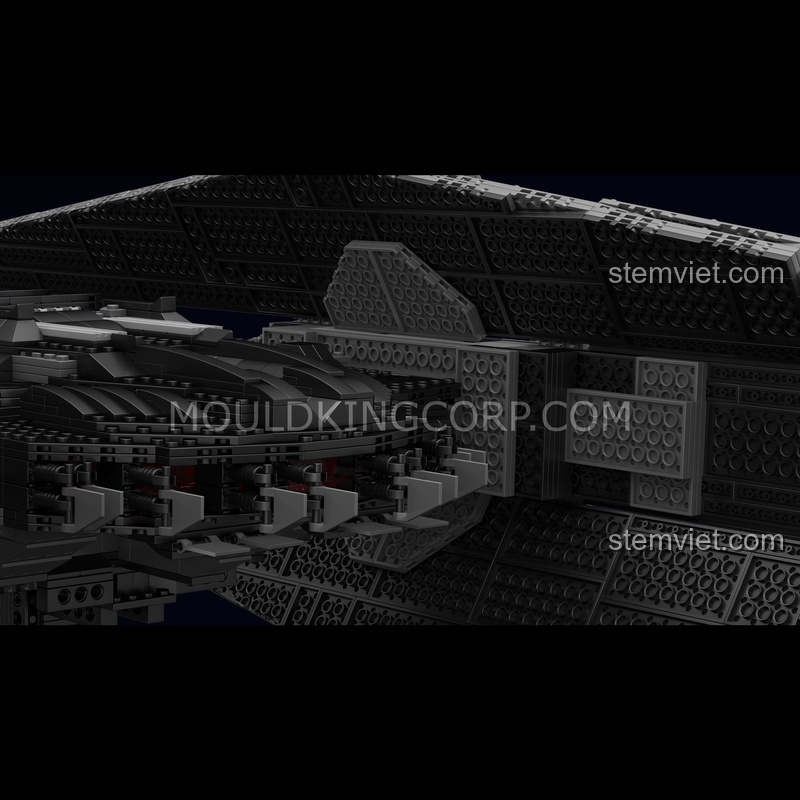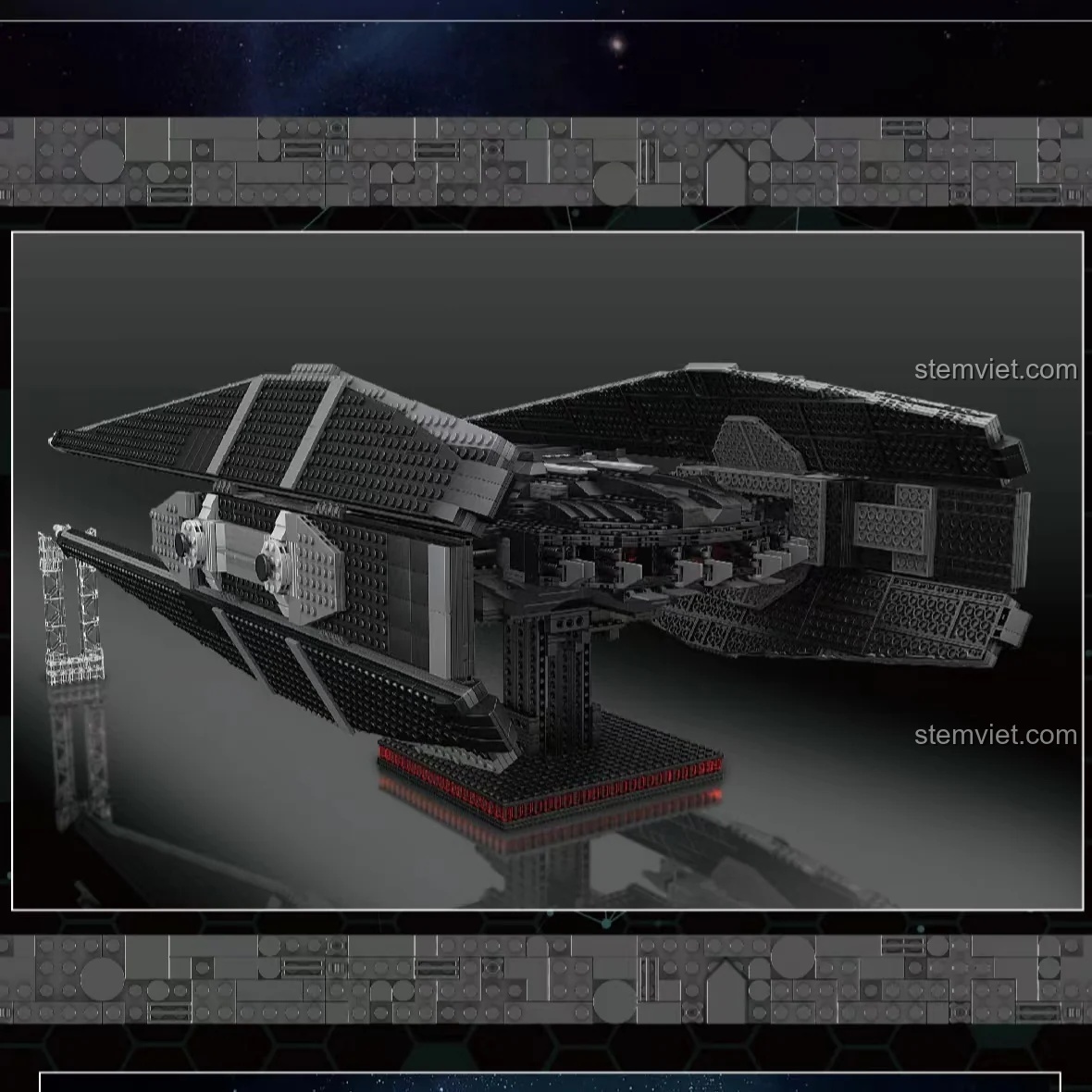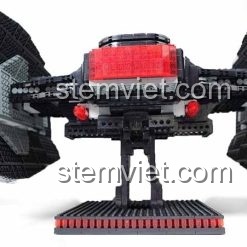Màu sắc chủ đạo là đen và xám, điểm xuyết những chi tiết đỏ rực rỡ ở phần buồng lái và động cơ, tạo nên vẻ ngoài vừa mạnh mẽ, vừa bí ẩn, đúng như bản chất của Kylo Ren. Từng mảnh ghép được thiết kế tỉ mỉ, đảm bảo độ chính xác cao khi lắp ráp, mang lại trải nghiệm xây dựng mượt mà và kết quả là một mô hình hoàn thiện chi tiết đến kinh ngạc. Bạn sẽ thấy rõ buồng lái được mô phỏng chân thực, các khẩu pháo laser ở đầu cánh, và cả hệ thống động cơ phản lực phía sau.
