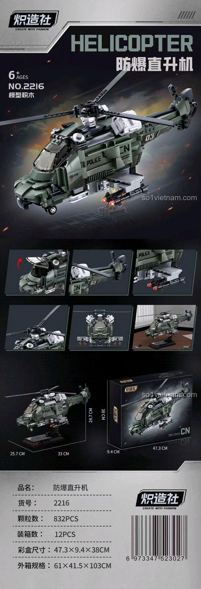 ✨ Thiết Kế Tinh Xảo: Mô Hình Trực Thăng Quân Sự 2216 Chân Thực Đến Từng Chi Tiết