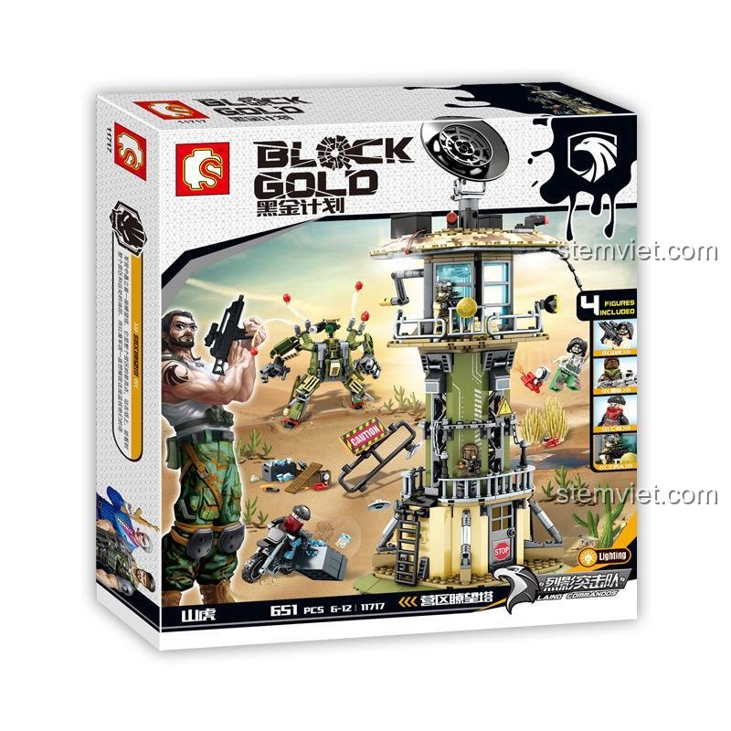 Có Đèn Chiếu Sáng & Robot Mecha: Khám Phá Bộ Lắp Ghép SEMBO 11717 Dự Án Black Gold: Tháp Canh Quân Sự (651 Mảnh Ghép)