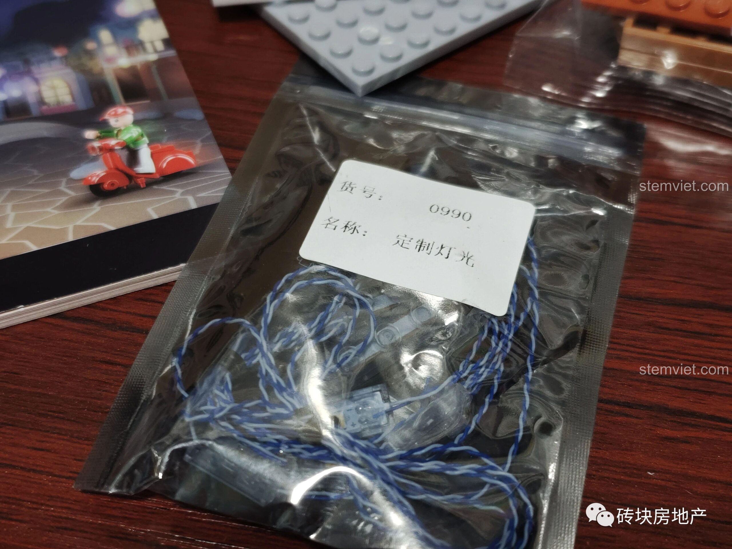 Dạ vâng, bộ sản phẩm này có đi kèm một bộ dây đèn LED chuyên dụng. Đèn thường sử dụng cổng cắm USB, mẹ có thể cắm vào sạc dự phòng, củ sạc điện thoại hoặc cổng USB của máy tính để thắp sáng cho mô hình, rất tiện lợi và an toàn ạ.