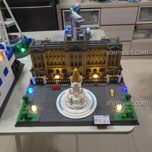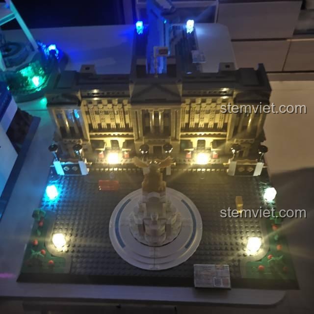 Điều làm nên sự khác biệt và hấp dẫn cho Mô hình Cung điện Buckingham 6224 chính là tính năng đèn LED đi kèm. Khi màn đêm buông xuống, chỉ cần bật công tắc, toàn bộ cung điện sẽ bừng sáng lung linh, huyền ảo. Ánh đèn vàng ấm áp hắt ra từ các ô cửa sổ, kết hợp với đèn trang trí ở khuôn viên, tạo nên một khung cảnh đêm London thu nhỏ đầy mê hoặc ngay trong phòng ngủ của bé. Tính năng này không chỉ làm tăng giá trị thẩm mỹ cho mô hình mà còn kích thích trí tưởng tượng, giúp bé sáng tạo ra những câu chuyện cổ tích về các vị vua và nữ hoàng.