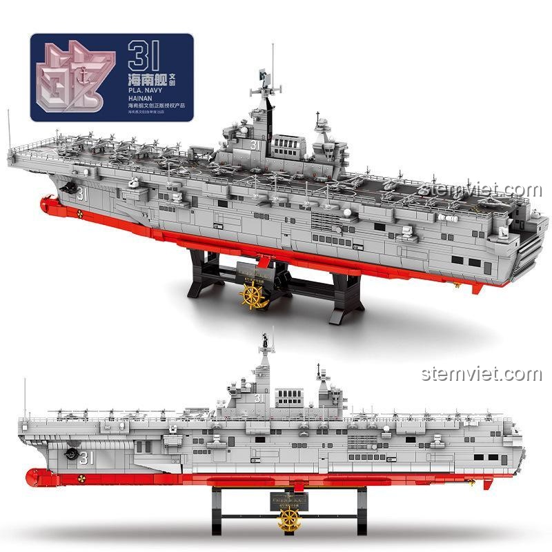 Chào mừng bạn đến với thế giới của những chiến hạm vĩ đại! Hôm nay, chúng ta sẽ cùng tìm hiểu về một biểu tượng sức mạnh mới của hải quân hiện đại – chiếc Tàu Tấn Công Đổ Bộ Type 075 Hải Nam. Đây không chỉ là một mô hình lắp ráp thông thường, mà còn là một phần lịch sử được tái hiện sống động ngay trong tầm tay bạn. Tàu tấn công đổ bộ Type 075, với chiếc đầu tiên mang số hiệu 31, được đưa vào biên chế Hải quân Quân Giải phóng Nhân dân Trung Quốc vào ngày 23 tháng 4 năm 2021. Sự kiện này đánh dấu một bước tiến lớn trong khả năng tác chiến đổ bộ và vận tải của hải quân, khẳng định vị thế của một cường quốc biển. Với bộ đồ chơi mô hình Tàu chiến Hải quân PLA này, bé trai 6 tuổi của bạn sẽ được tiếp cận với những kiến thức quân sự giá trị, hiểu thêm về vai trò và tầm quan trọng của các chiến hạm hiện đại. Đây là cơ hội tuyệt vời để mẹ giúp bé khám phá thế giới rộng lớn, khơi gợi niềm đam mê tìm tòi và học hỏi ngay từ khi còn nhỏ. Bộ lắp ráp SEMBO 202002 không chỉ là đồ chơi, mà còn là một bài học lịch sử và kỹ thuật đầy thú vị.