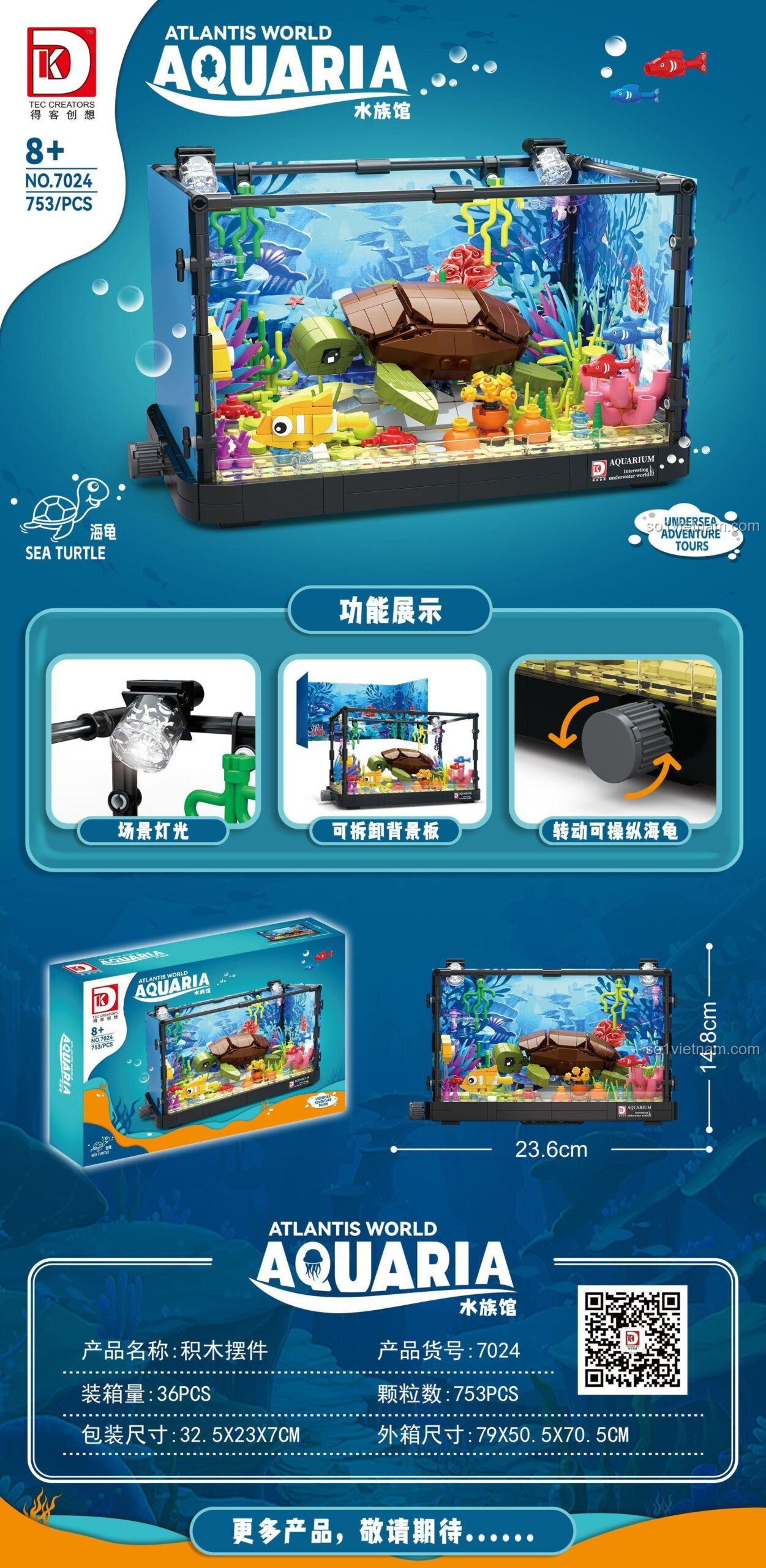 Có Đèn LED, Rùa Biển Xoay Được, Bảng Nền Tháo Rời: Khám Phá Bộ lắp ghép DK 7024 Bể cá Rùa biển (753 mảnh ghép)