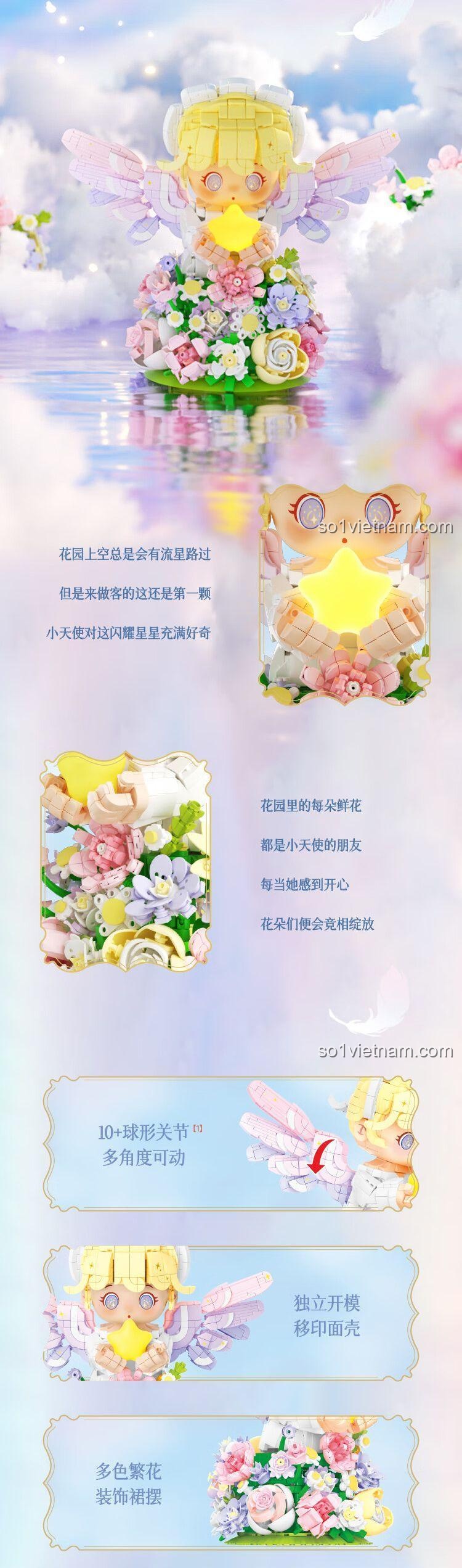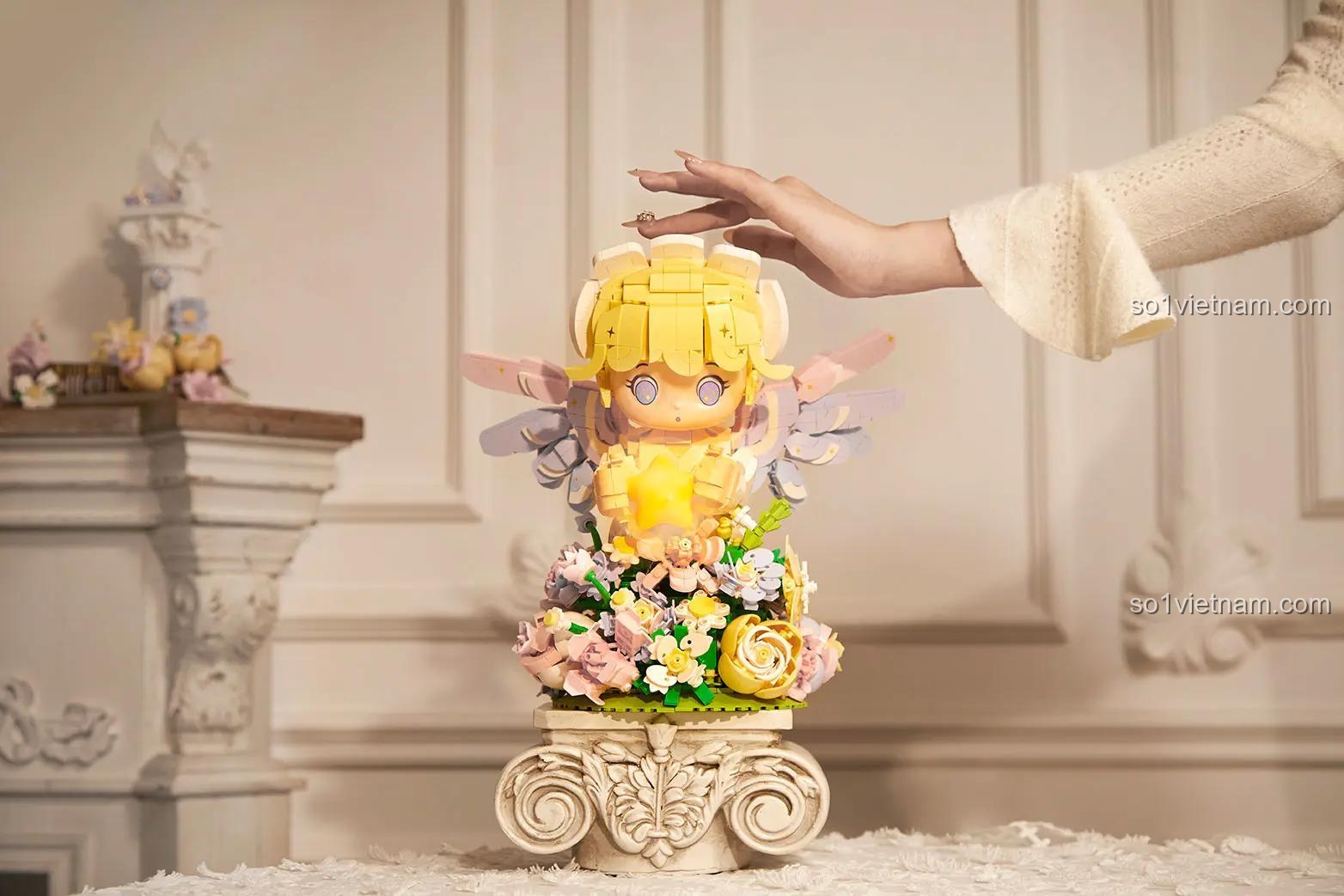 - **Vườn Hoa Thần Tiên:** Kết hợp mô hình với các đồ chơi hoa lá khác để tạo nên một khu vườn thần tiên lung linh, nơi thiên thần đang chăm sóc những bông hoa.