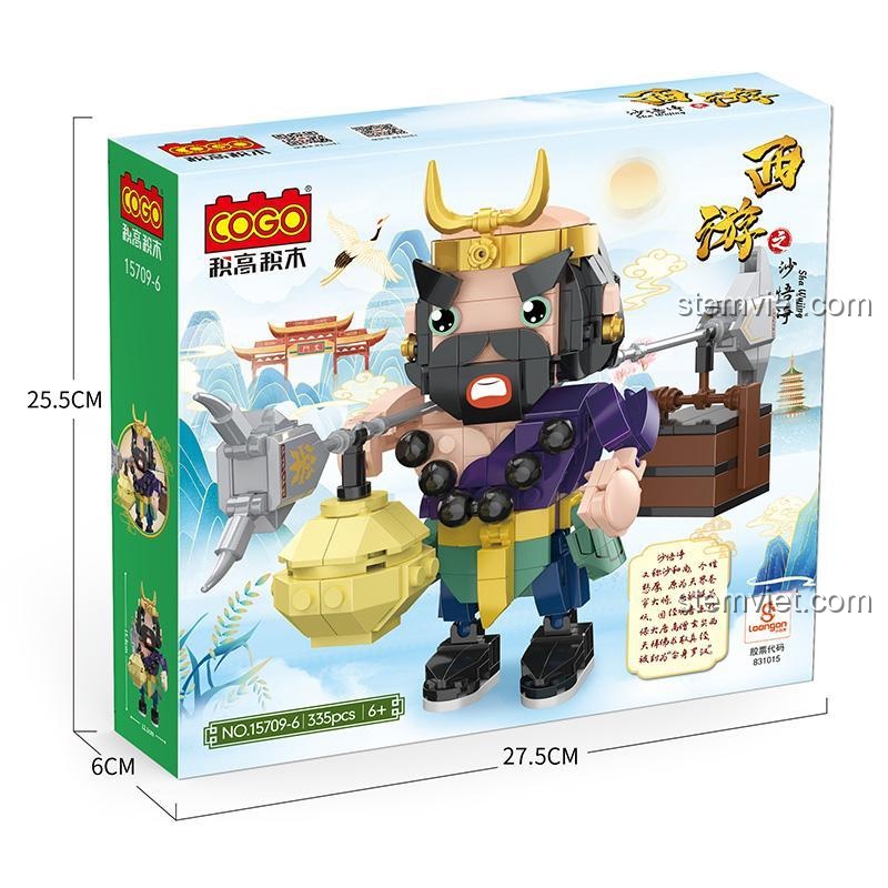 Mô hình Sa Tăng từ COGO 15709-6 được thiết kế vô cùng ấn tượng và chi tiết, tái hiện một cách sống động hình ảnh vị thần tăng cần mẫn nhưng cũng đầy sức mạnh. Khoác trên mình bộ chiến bào màu tím và xanh lá đặc trưng, đầu đội kim cô, và đặc biệt là chuỗi vòng đầu lâu trước ngực – chi tiết không thể nhầm lẫn của Sa Tăng khi còn ở sông Lưu Sa. Từng đường nét trên khuôn mặt, từ bộ râu quai nón rậm rạp đến ánh mắt cương nghị, đều toát lên vẻ uy dũng của một vị tướng nhà trời. Với chiều cao 16cm, mô hình có kích thước vừa phải, hoàn hảo để trưng bày trên bàn học hay trong tủ kính của bé. Điểm nhấn đặc biệt là vũ khí Hàng Yêu Bảo Trượng được chế tác tỉ mỉ, cùng với gánh hành lý và chiếc hồ lô quen thuộc. Tất cả tạo nên một tổng thể hài hòa, một đồ chơi mô hình Sa Tăng chân thực đến không ngờ, chắc chắn sẽ làm các fan nhí của Tây Du Ký phải trầm trồ thán phục.