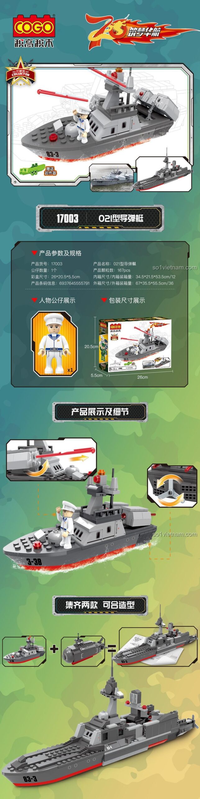 Bạn có thể tìm mua bộ lắp ghép Tàu Tên Lửa Type 021 COGO 17003 tại cửa hàng của chúng tôi với cam kết giá tốt nhất và chất lượng đảm bảo.