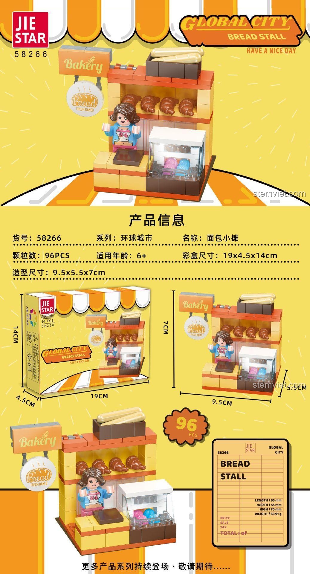 Con Gái 6 tuổi Sẽ Thích Mê: JIESTAR 58266 Quầy Bán Bánh Mì Global City (Mô hình cửa hàng mini)