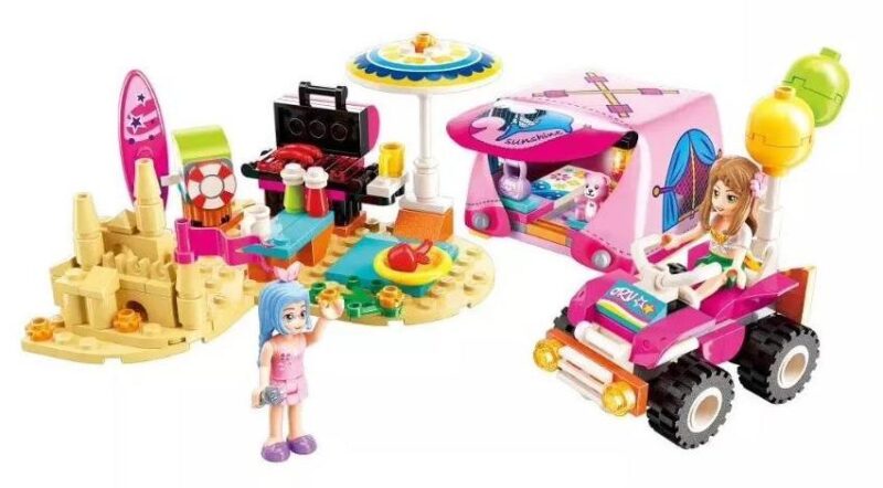 Ngay từ cái nhìn đầu tiên, Khu cắm trại bãi biển QMAN đã chinh phục các bé gái bởi tông màu hồng, vàng, xanh dương pastel ngọt ngào và tươi sáng. Mọi chi tiết đều được thiết kế vô cùng tỉ mỉ và đáng yêu, từ chiếc xe địa hình màu hồng cá tính có gắn bóng bay, đến chiếc lều vải xinh xắn với họa tiết cá heo ngộ nghĩnh. Bé có thể tự tay xây nên một lâu đài cát vững chãi, chuẩn bị một bữa tiệc nướng BBQ thịnh soạn với xúc xích và đồ uống, hay cho các bạn nhỏ lướt trên tấm ván sành điệu. Đặc biệt, bộ sản phẩm còn đi kèm một tấm đế sa bàn in hình bãi biển và sóng nước sống động, giúp toàn bộ khung cảnh trở nên liền mạch và đẹp mắt hơn bao giờ hết.