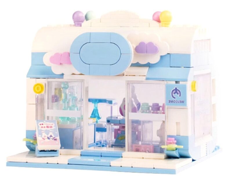 Ngay từ cái nhìn đầu tiên, đồ chơi mô hình ZHEGAO DS1027 đã chinh phục mọi ánh nhìn bởi thiết kế ‘Tiệm Giặt Mộng Mơ’ vô cùng độc đáo. Tông màu chủ đạo là sự kết hợp hài hòa giữa xanh lơ, trắng, hồng và tím, tạo nên một không gian pastel ngọt ngào, dễ thương. Điểm nhấn đặc biệt là những đám mây bồng bềnh được trang trí trên mái nhà và mặt tiền, đúng như tên gọi ‘Mây Mùa Hè’. Mô hình có kích thước nhỏ gọn 13 x 12.8 x 13 cm, hoàn hảo để trưng bày trên bàn học hoặc kệ sách của bé. Cửa kính trong suốt cho phép nhìn thấy toàn bộ nội thất được sắp xếp tỉ mỉ bên trong, từ những chiếc máy giặt mini, bàn ủi, đến các chai lọ đựng nước giặt xả đầy màu sắc, tất cả tạo nên một tiệm giặt là sống động và chân thực đến không ngờ.