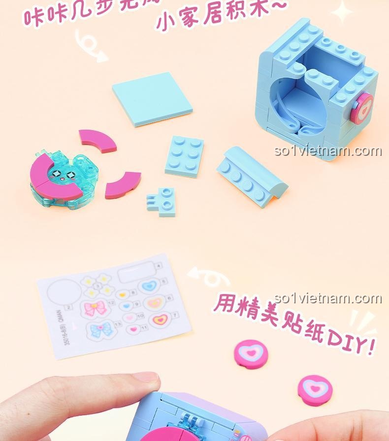 Điểm nhấn đặc biệt của bộ sưu tập đồ gia dụng tí hon 35016 chính là thiết kế không thể đáng yêu hơn! Mỗi món đồ vật quen thuộc như tivi, tủ lạnh, máy giặt… đều được nhân hóa với đôi mắt long lanh, khuôn mặt biểu cảm ngộ nghĩnh, biến chúng thành những người bạn tí hon sống động. Sử dụng tông màu pastel chủ đạo như hồng, tím, xanh lơ, vàng, bộ sưu tập mang đến một cảm giác ngọt ngào, nhẹ nhàng, đúng chuẩn ‘thế giới trong mơ’ của các bé gái. Từng chi tiết nhỏ đều được chăm chút tỉ mỉ, từ phím đàn piano, vòi sen bồn tắm cho đến những sticker trang trí đi kèm, cho phép bé tự tay ‘DIY’ để mỗi món đồ mang đậm dấu ấn cá nhân. Vẻ đẹp tinh tế và sự dễ thương của các mô hình này không chỉ để chơi mà còn có thể trở thành những vật trang trí xinh xắn cho góc học tập của bé, khơi gợi cảm nhận thẩm mỹ và tình yêu cái đẹp ngay từ khi còn nhỏ.